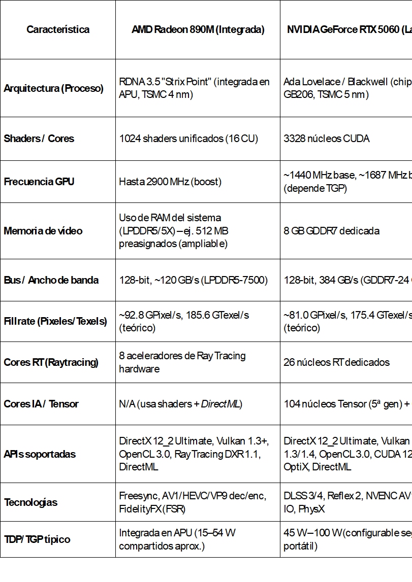 Pero ¿Qué significan estas puntuaciones? Viene a confirmar las características que os hemos explicamos arriba. Por un lado, el Timy Spy confirma que el rendimiento es muy superior a un 4060 y que por tanto podría mover juegos en ultra a 1080p o en alto a 1440p con el uso de DLSS para maximizar los FPS. Por el lado de Steel Nomad, especialmente en su versión light que es para portátiles nos indica esta puntuación que tiene una eficiencia/rendimiento bastante alto o lo que es lo mismo estabilidad mientras jugamos. Por el ultimo la prueba de Solar Bay nos indica que puede soportar Ray Tracing con soltura ya que con una puntuación de 45000 nos garantiza que esto es así.