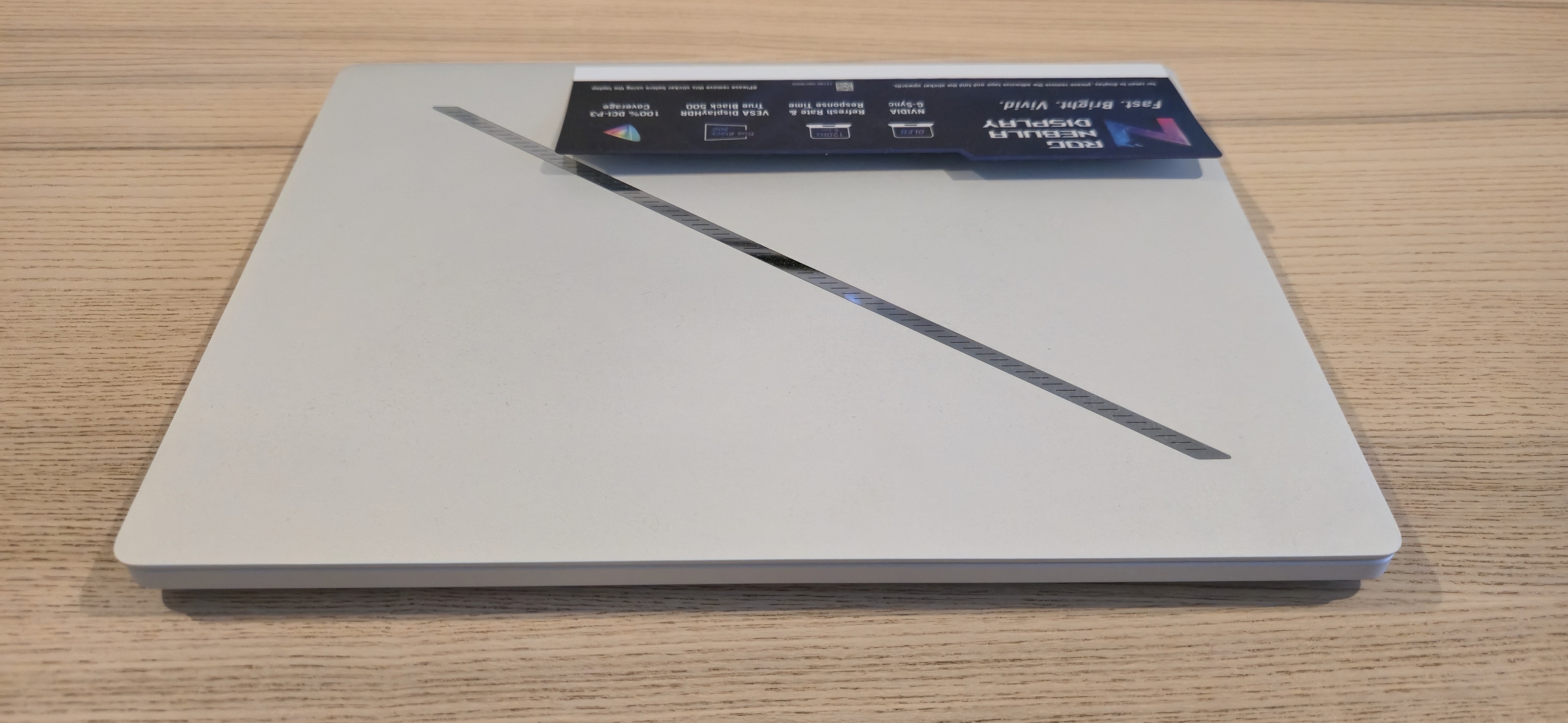 Como se aprecia en las fotos, el chasis de la pantalla incluye un detalle bastante curioso y es una tira led que hace los usos de indicador de carga pero que también sirve para más funciones personalizables mediante software dedicado.