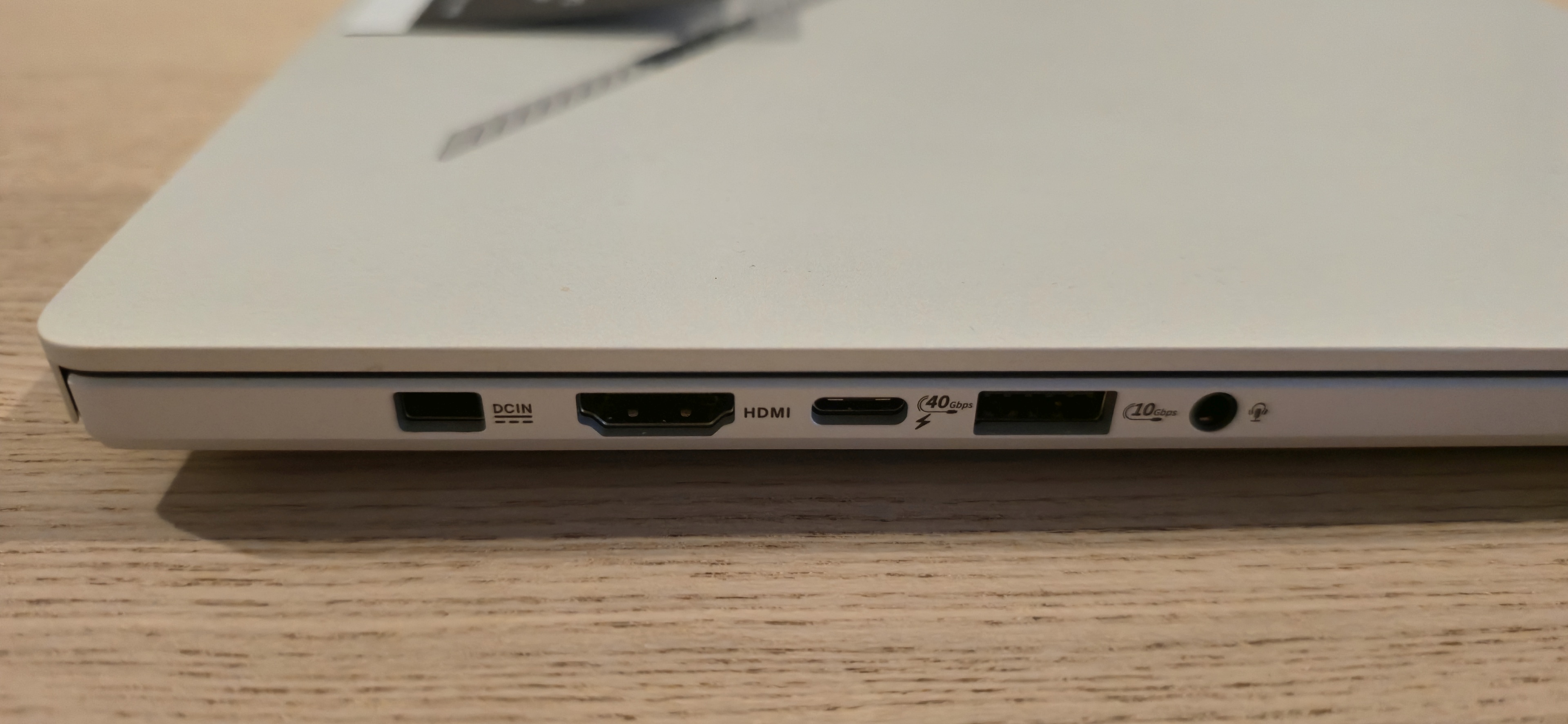 En el lateral izquierda nos encontramos con el puerto de carga, la salida HDMI, entrada tipo C USB 4 con soporte para DisplayPort y entrada de carga extra. USB tipo A Gen 2 – 3.2 y el clásico jack 3.5.