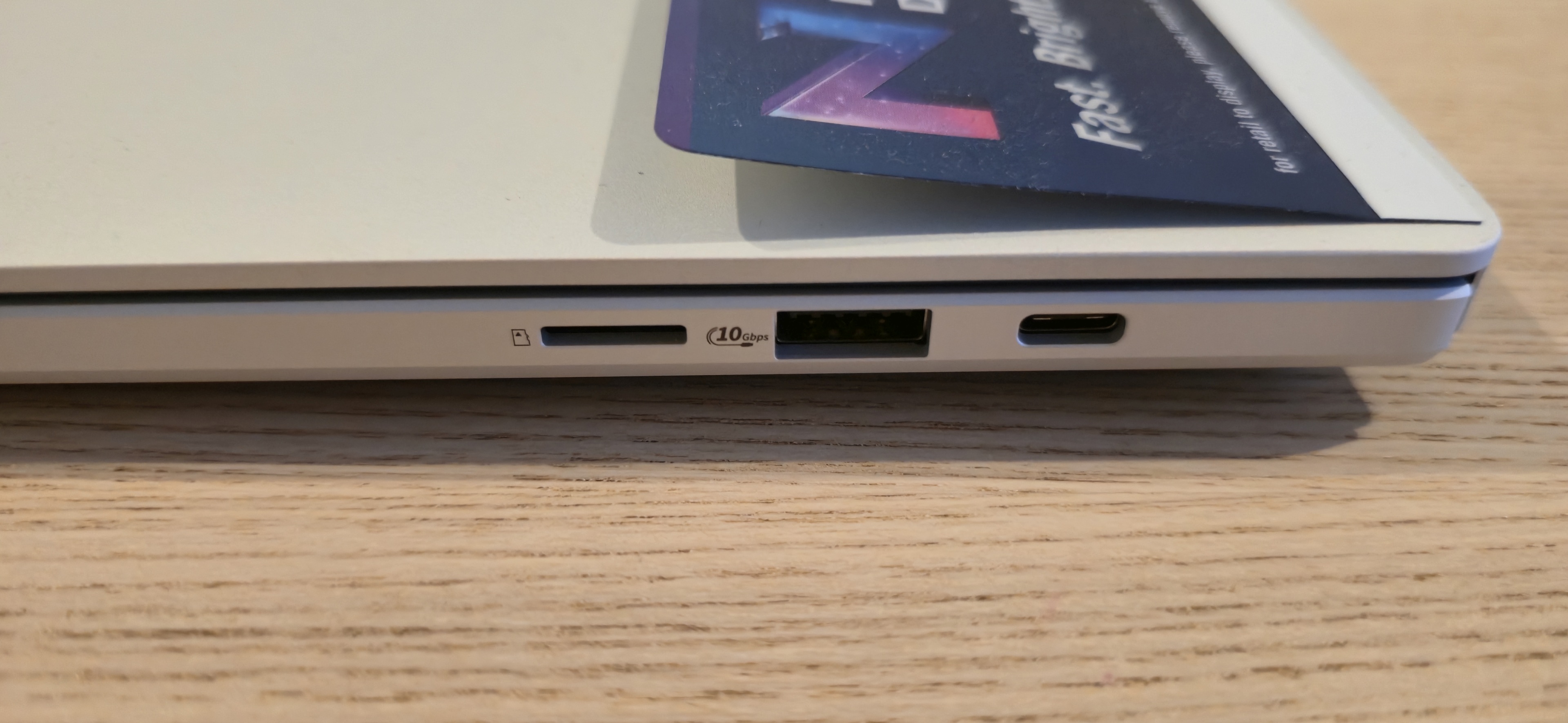 Por el lado derecho, nos encontramos el lector de tarjetas microSD con soporte UHS-II otro puerto USB 3.2 Tipo-A y un último USB tipo C compatible con pantallas y soporte de alimentación en este caso para entregarla. La conectividad WIFI es compatible con Wifi 7 es decir (802.11be) de triple banda al que se le añade Bluetooth 5.4.