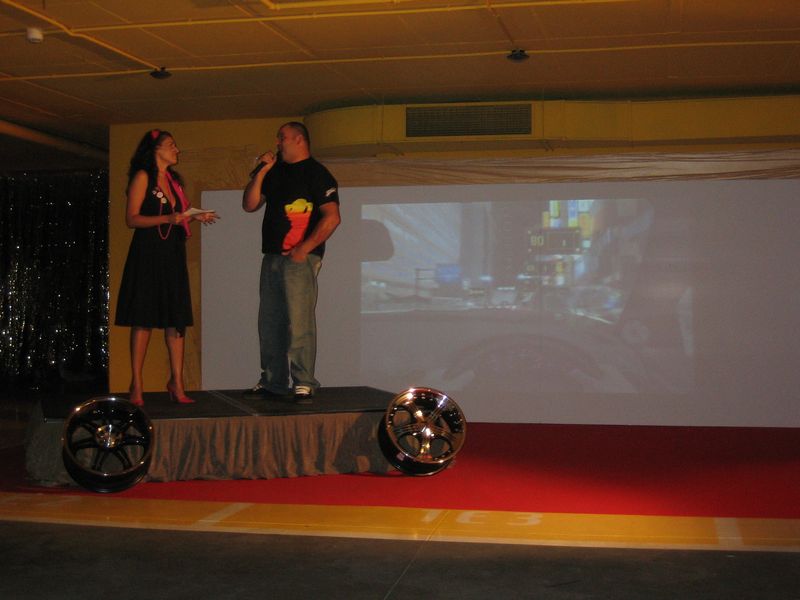 Hablando de cine, Rosanna Walls, la “mala” de Torrente 2 – Misión en Marbella, hizo de maestra de ceremonias, presentando uno tras otro vehículos tuneados por el prestigioso preparador Juan Carlos Caballero. Desde vehiculos deportivos como el Mazda MX5 o el Subaru Imprezza hasta todoterrenos, como el impresionante Hummer H5. Aunque la estrella de la noche fue el vehiculo que Caballero ha preparado especialmente por encargo de THQ para incluirlo en el juego y por tanto será uno de los que podrán conducir quienes se pongan a los mandos de sus consolas, se trata de un Audi TT tuneado y decorado con elementos incluidos en Juiced 2.