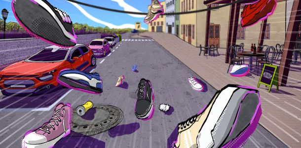 La narrativa se descubre a manera que avanzamos en dos direcciones: tareas sencillas y conversaciones con otros calzados. Entre esas tareas cotidianas, patearemos latas, cruzaremos pasos de cebra sin tocar el asfalto, jugaremos en los columpios, jugaremos a máquinas de baile imposibles o veremos cómo se nos atascan algunas latas en el zapato, regalándonos ese característico traqueteo metálico al pisar.