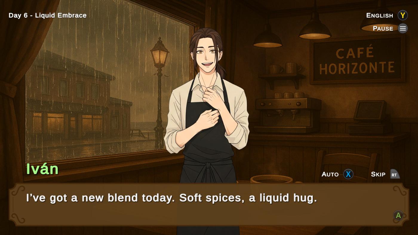Visualmente, el juego es una delicia para los que aprecian el buen dibujo. Las ilustraciones tienen ese toque suave y artesanal que encaja perfectamente con la temática invernal y costera. El nivel de detalle en los escenarios, como las estanterías de la librería o los reflejos del mar en invierno, logra crear una atmósfera de recogimiento muy lograda. No son solo dibujos estáticos; hay una intención clara en el uso de la paleta de colores para transmitir esa frialdad exterior frente a la calidez de los encuentros personales. Los diseños de los personajes, además, cuentan con una expresividad que suple perfectamente la falta de movimiento.