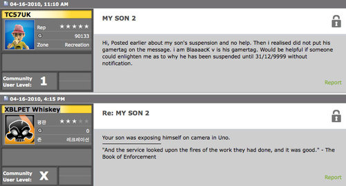 Leemos en ese oasis online que son los foros de NeoGaf una historia de lo más curiosa... Resulta que la semana pasada el usuario TC57UK preguntaba, entre indignado y extrañado el por qué de la expulsión de su hijo de Xbox Live, con un baneo de por vida (a no ser que cambien mucho las cosas en las investigaciones anti envejecimiento): hasta el 31 de diciembre 9999.