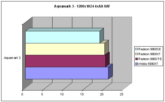 | nVidia 5900XT | Radeon 9800 PE | Radeon 9600XT | Radeon 9800SE | |