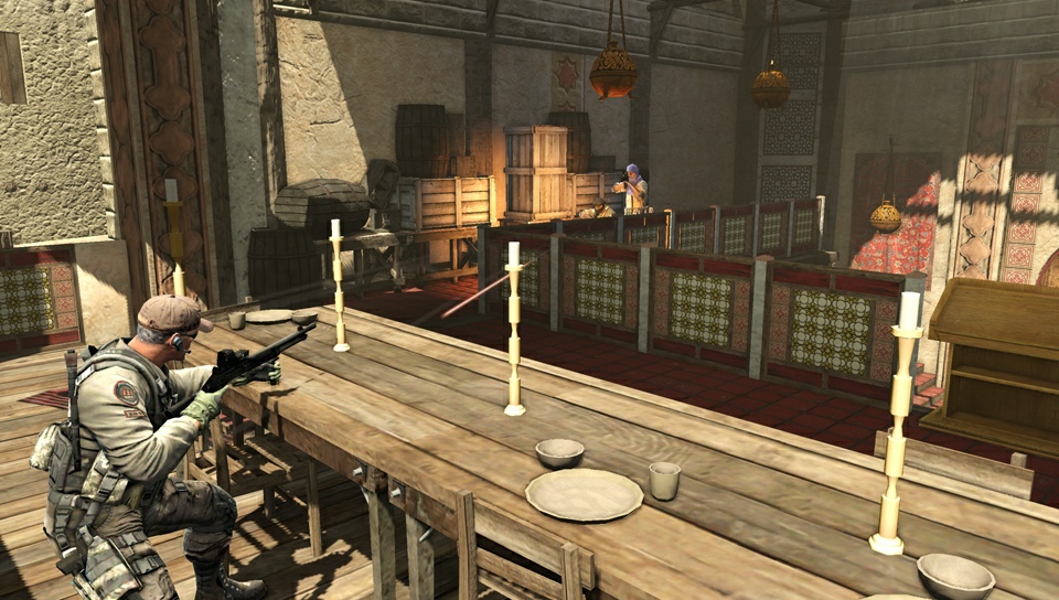 Otro punto a favor de este último modo es que si elegimos infiltrarnos, aunque sea la opción más lenta, veremos como el número de enemigos es menor, es decir, encontraremos los enemigos que se muestren en el lugar y podremos salir airosos de la misión de turno. Si por el contrario optamos por ir a lo “bestia” nos encontraremos con que los enemigos aumentan de número, ya que estos darán la voz de alarma y te atacarán sin compasión hasta que acaben contigo o si por el contrario eres un tirador nato, tu con ellos. En ocasiones optar por este modo es todo un suicidio ya que te verás rodeado y asediado continuamente hasta que desaparezcas del lugar y no puedan localizarte.