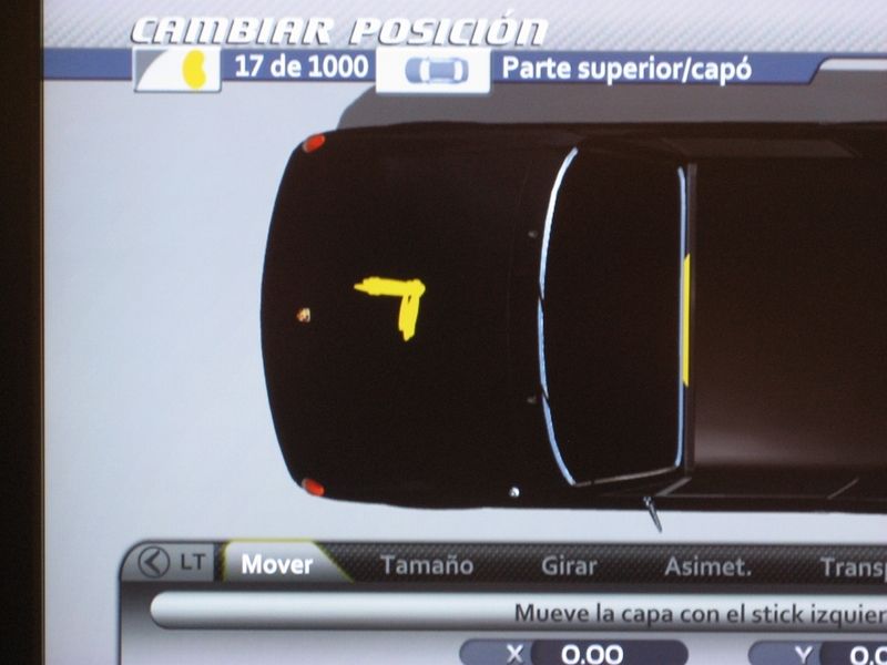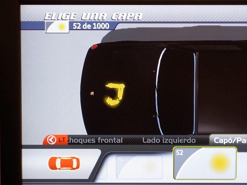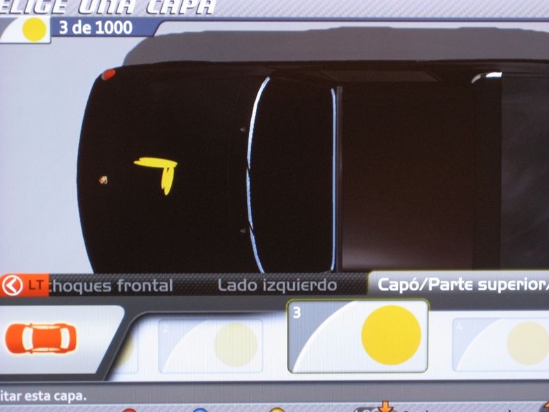 Todas la capas que hemos creado hasta el momento las guardaremos bajo un mismo nombre para poder aplicarlas más tarde sobre cualquier coche. Para ello, nos posicionamos en la primera capa, hacemos clic sobre el stick izquierdo, sin soltar pulsamos A y aún sin soltar, movemos el stick izquierdo hacia la derecha hasta que hayamos seleccionado todas las capas del dibujo, que se marcarán de color rojo. Con todas las capas seleccionadas pulsamos A y elegimos guardar grupo de capas.