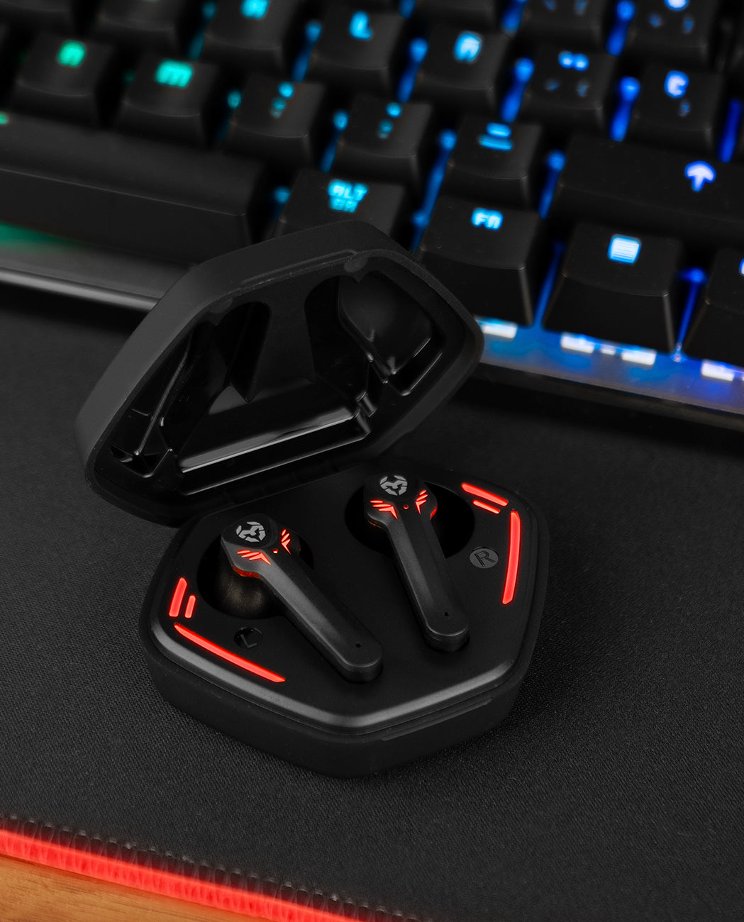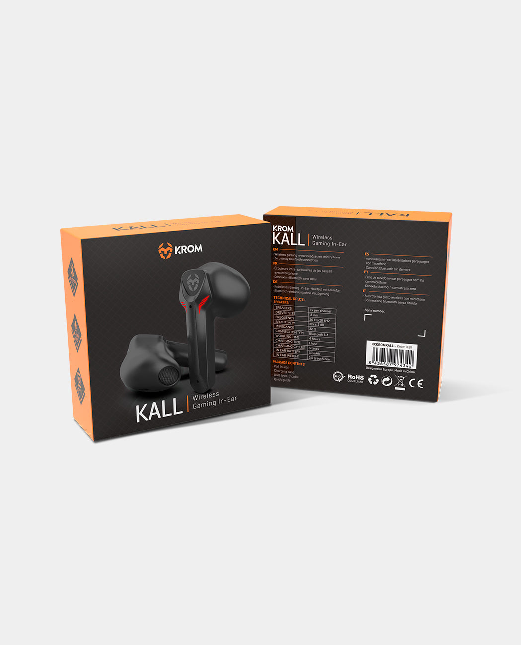 Krom Kall son unos ergonómicos auriculares gaming in-ear inalámbricos que guiarán el camino hacia la victoria. No habrá sonido que enemigo pueda emitir que escape que no se escuche, además con su micrófono integrado la voz se oirá alta y clara. Cuentan con Bluetooth 5.3 de baja latencia permitiendo escuchar de manera óptima a través de tus auriculares estando hasta a 10 metros de distancia de donde estén conectados.